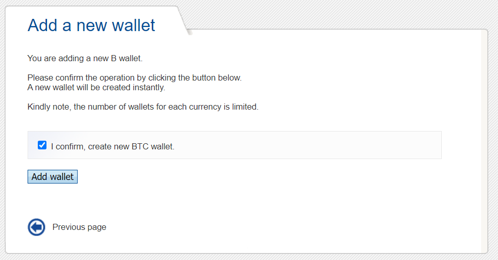 سپس وارد بخش تعریف wallet خواهید شد و گزینهی Create a new BTC wallet را انتخاب کنید.